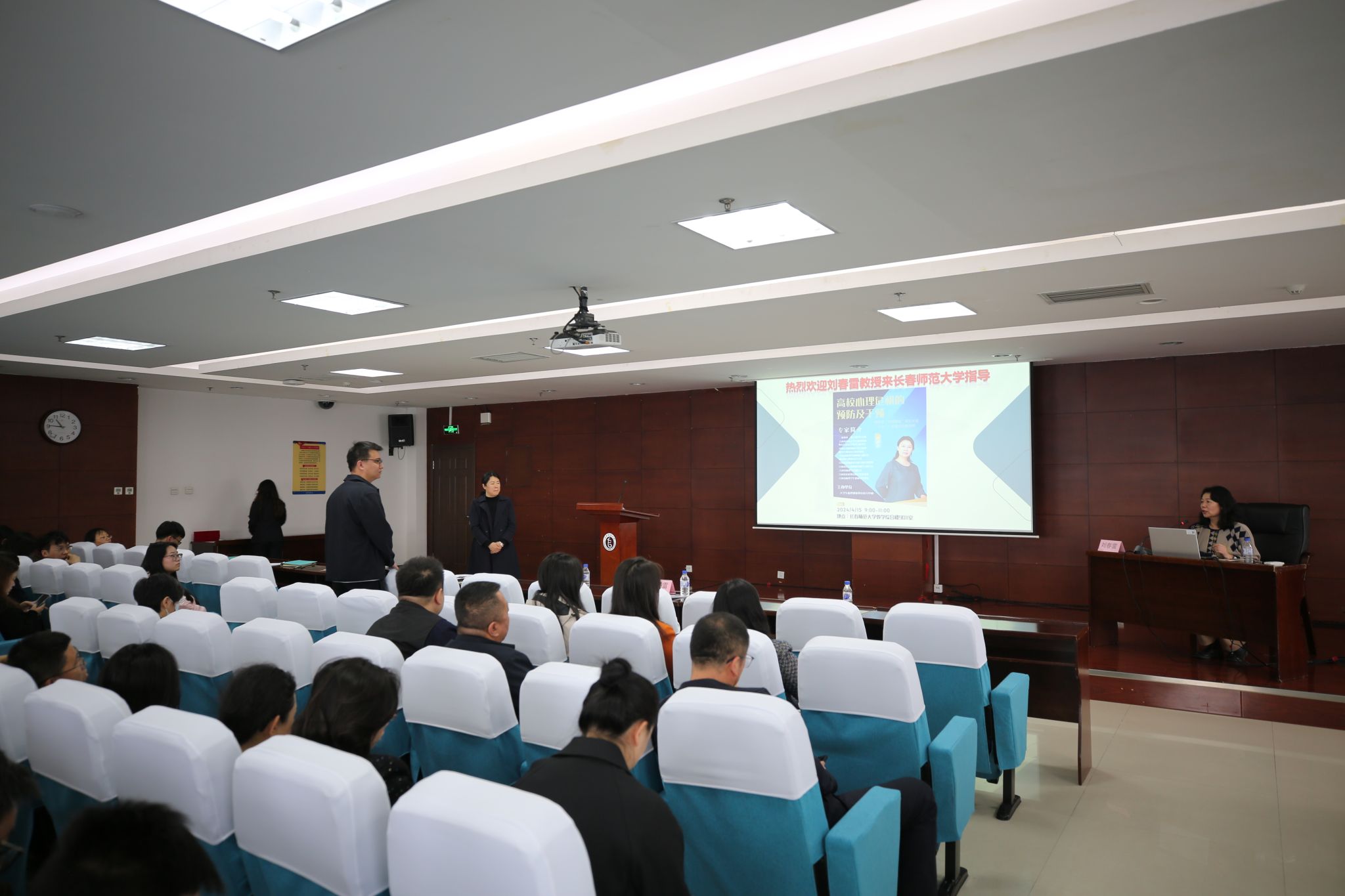 此次讲座邀请吉林省高校大学生心理健康教育专家指导委员会秘书长、中国灾害防御协会社会心理服务专业委员会常务委员、全国高校心理委员研究协作组理事刘春雷教授作专题讲座。刘春雷教授结合多年工作经验,通过生动的案例,从大学生心理健康背景及现状、心理危机的概念、心理危机的发现与识别、心理危机干预体系与路径、大学生心理危机预防与干预的工作思路等方面做了深入浅出的讲解,并针对辅导员工作中遇到的问题进行现场解答。